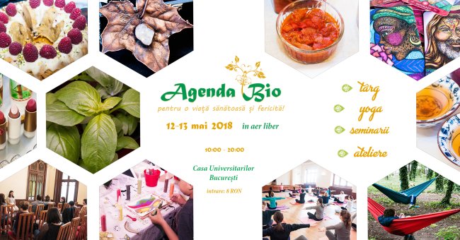A noua ediție Agenda Bio are loc în zilele de 12 și 13 mai 2018, între orele 10:00 și 20:00, la Casa Universitarilor din București. Târgul vă așteaptă în grădină, cu relaxare și propuneri pentru sănătate.