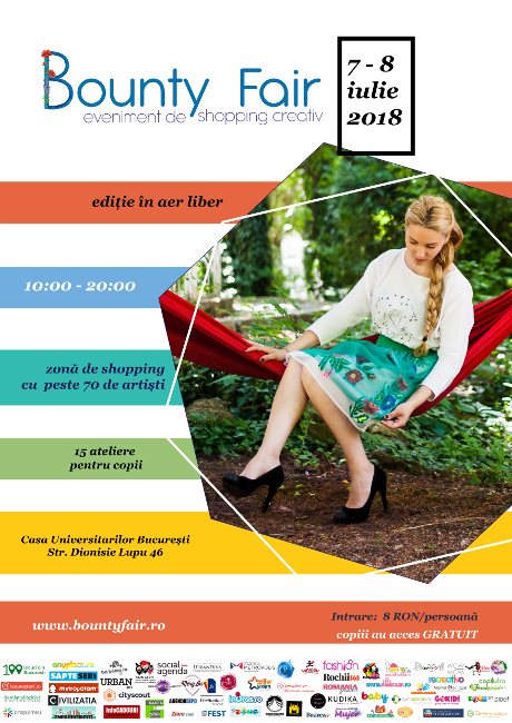 Iulie aduce ultima ediție de vară a târgului creativ Bounty Fair. În aer liber, cu umbră, hamace și limonadă, Bounty Fair vă așteaptă cu două zile de târguieli și relaxare.