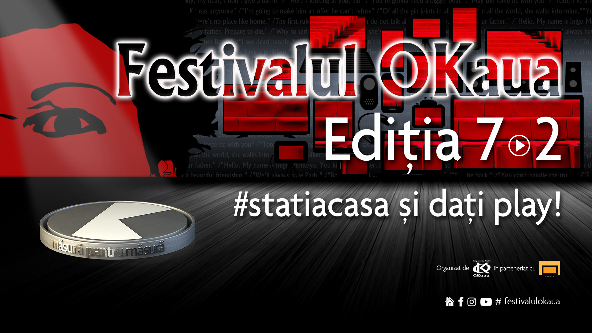 “Prin această ediție a festivalului le vom oferi spectatorilor noștri patru zile pline cu filme, spectacole și provocări ale liceenilor și studenților la actorie, dorindu-ne să le oferim o alternativă plăcută de a-și petrece sfârșitul de săptămână acasă, în siguranță. Ne ghidăm după deviza festivalului „Măsură pentru măsură” la care adăugăm anul acesta #statiacasa și dați play!”