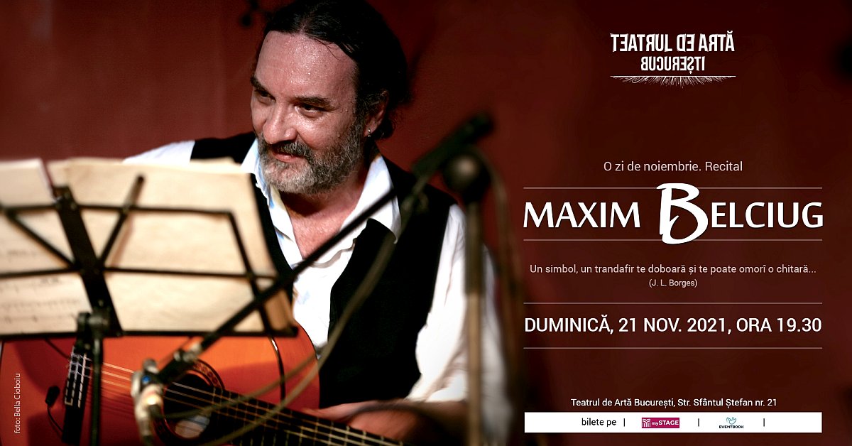 Teatrul de Artă București vă invită duminică, 21 noiembrie 2021, la un recital de chitară susținut de Maxim Belciug. Vi se pregătește o seară specială, în care chitara nu mai este un simplu instrument, ci devine orchestră, culoare, freamăt de nuanțe și emoții.