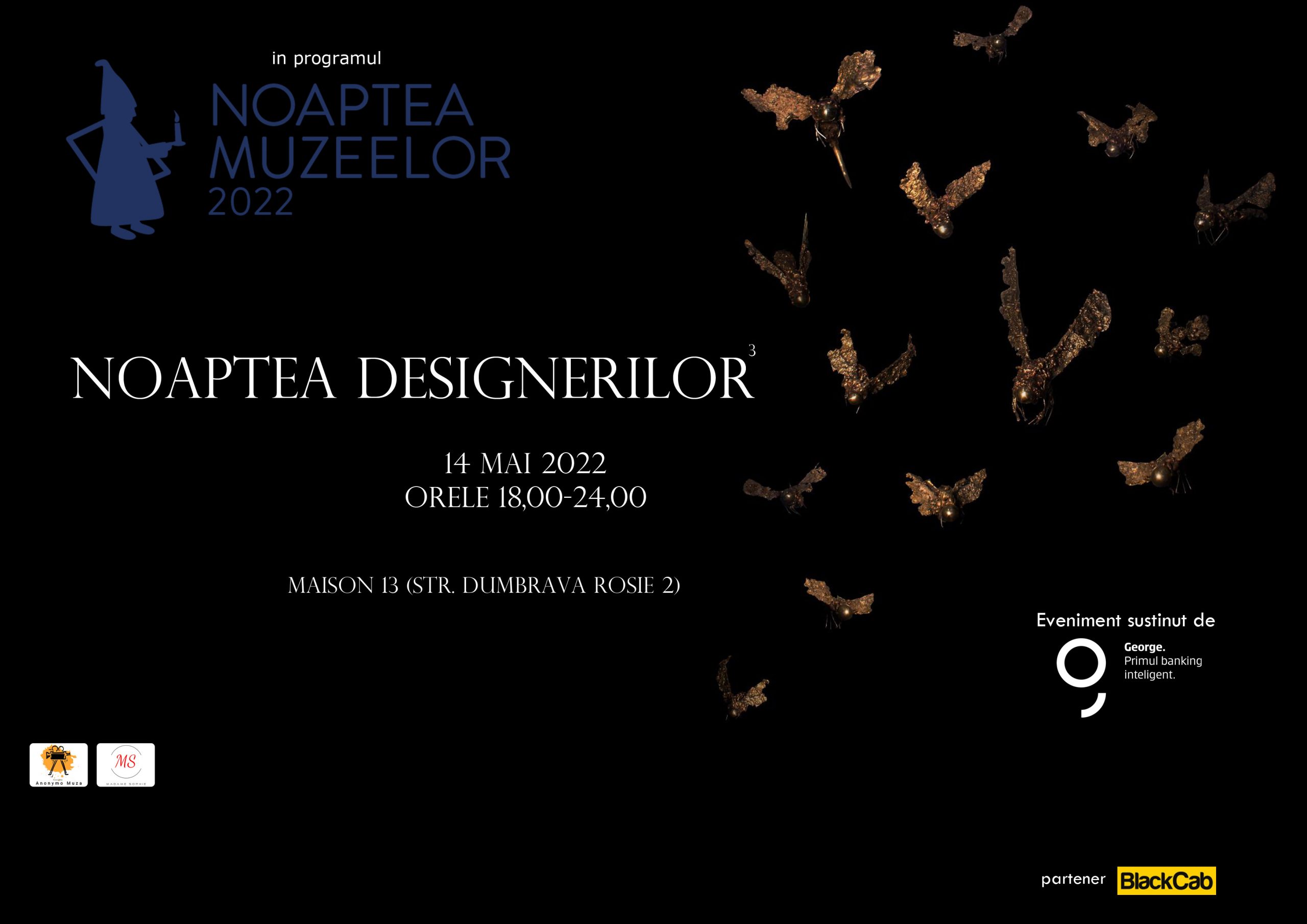 Asociația Anonymo Muza și Madame Sophie vă invită să petreceți o noapte la muzeu la Noaptea Designerilor. A treia ediție va avea loc pe 14 mai 2022 între orele 18:00 și 24:00 la Maison 13 (str. Dumbrava Roșie nr. 2).